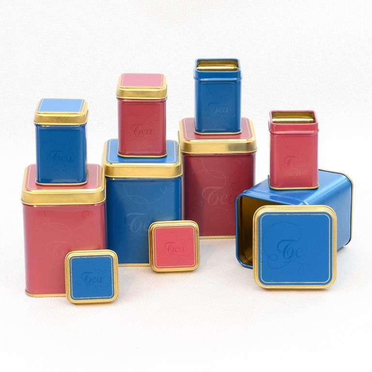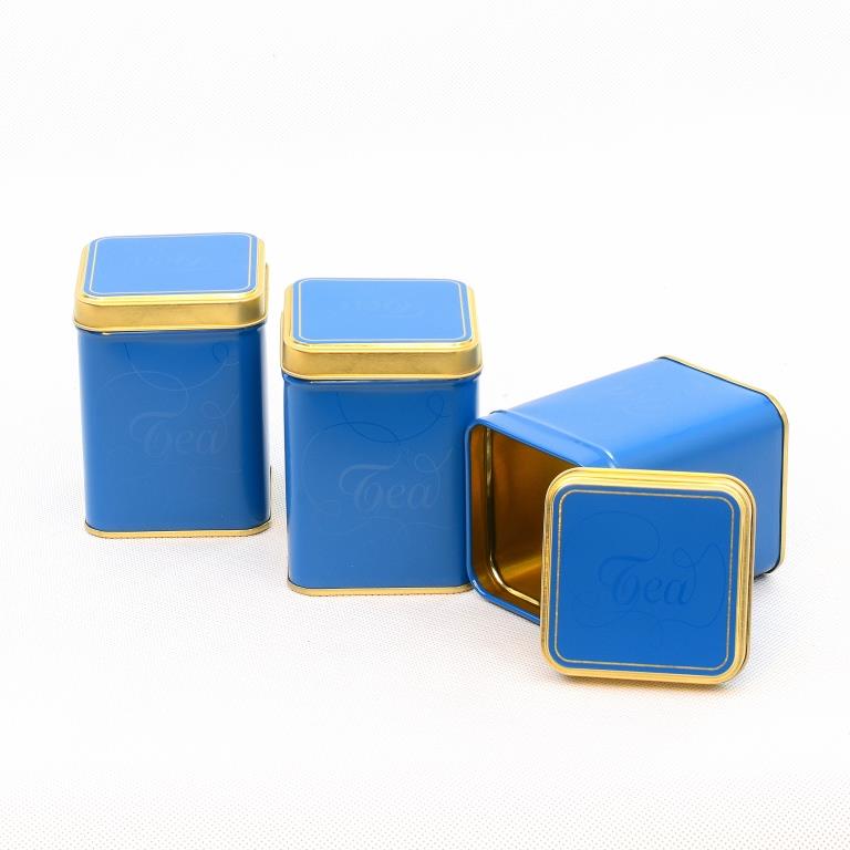 Metalowa puszka o pojemności 100 g w kolorze niebieskim.