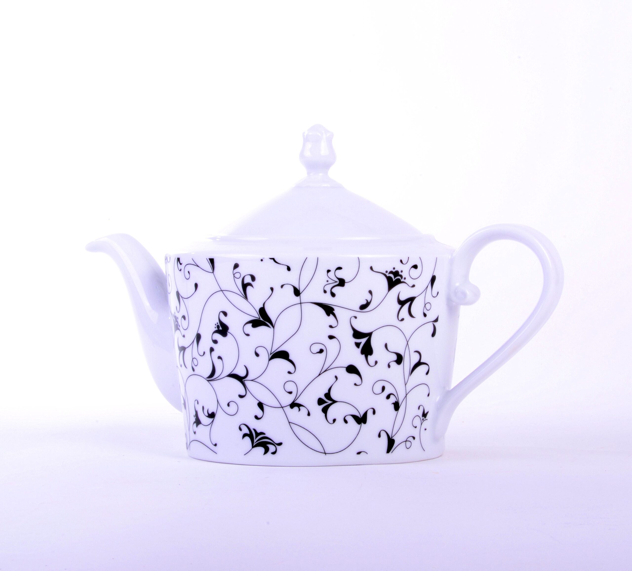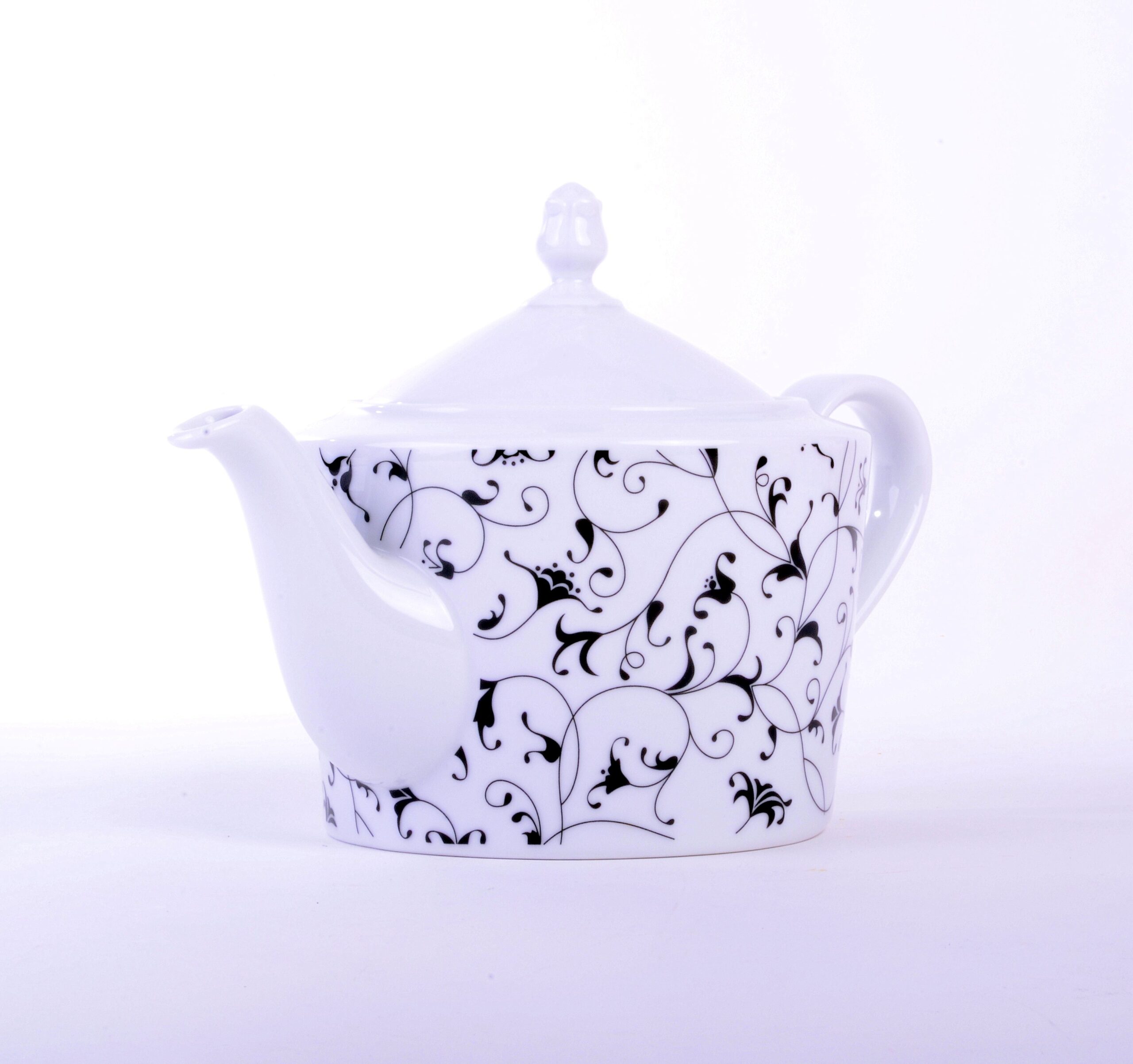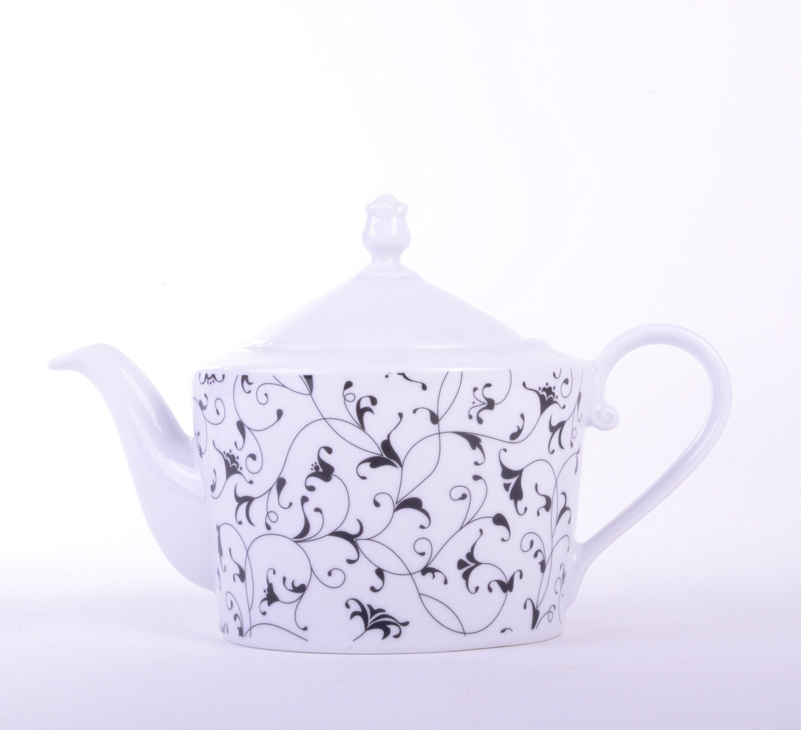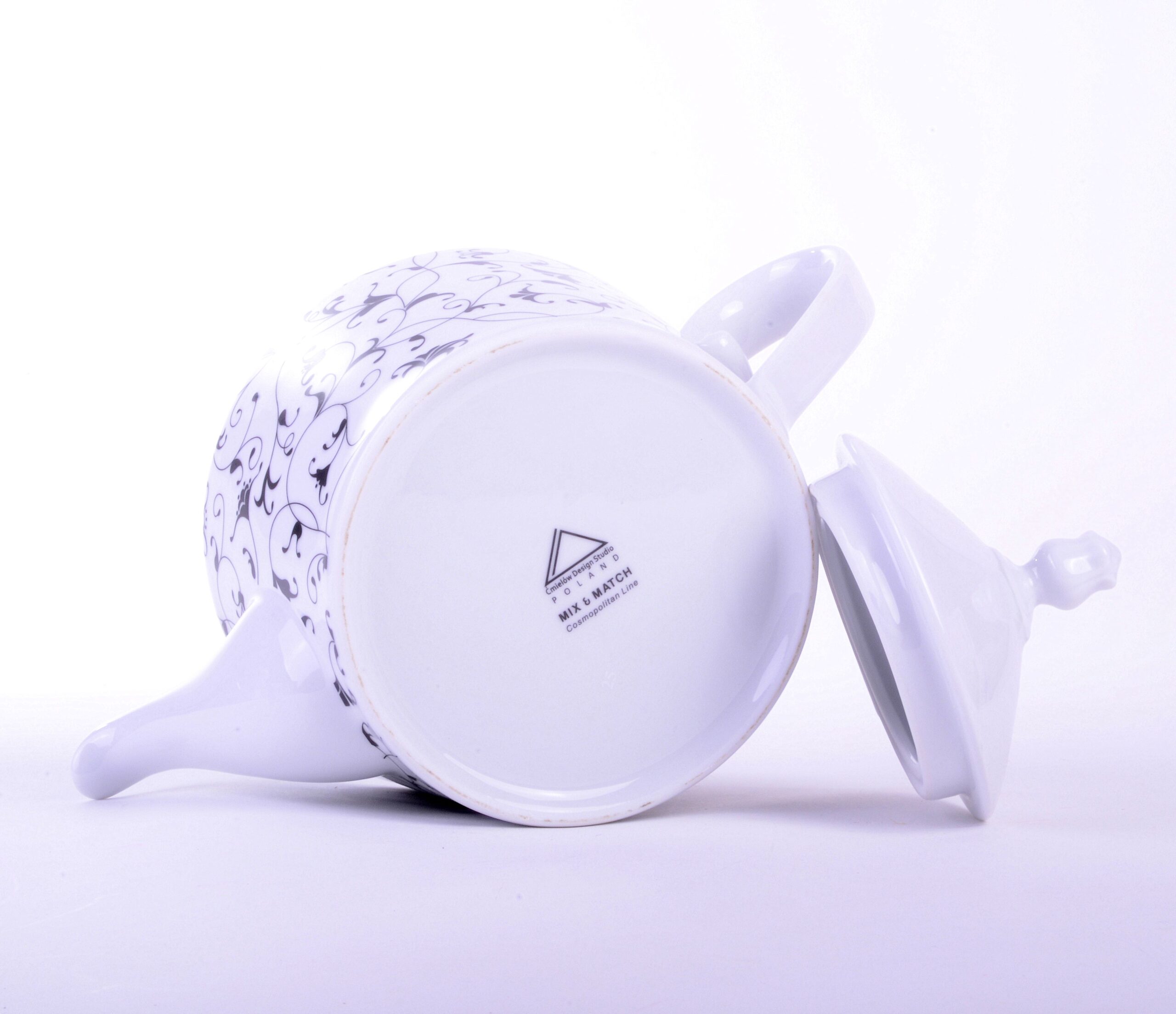 Czajnik Cosmopolitan Ćmielów 1100 ml.. Czajnik ozdobiony delikatnym wzorem w kolorze czarnym.