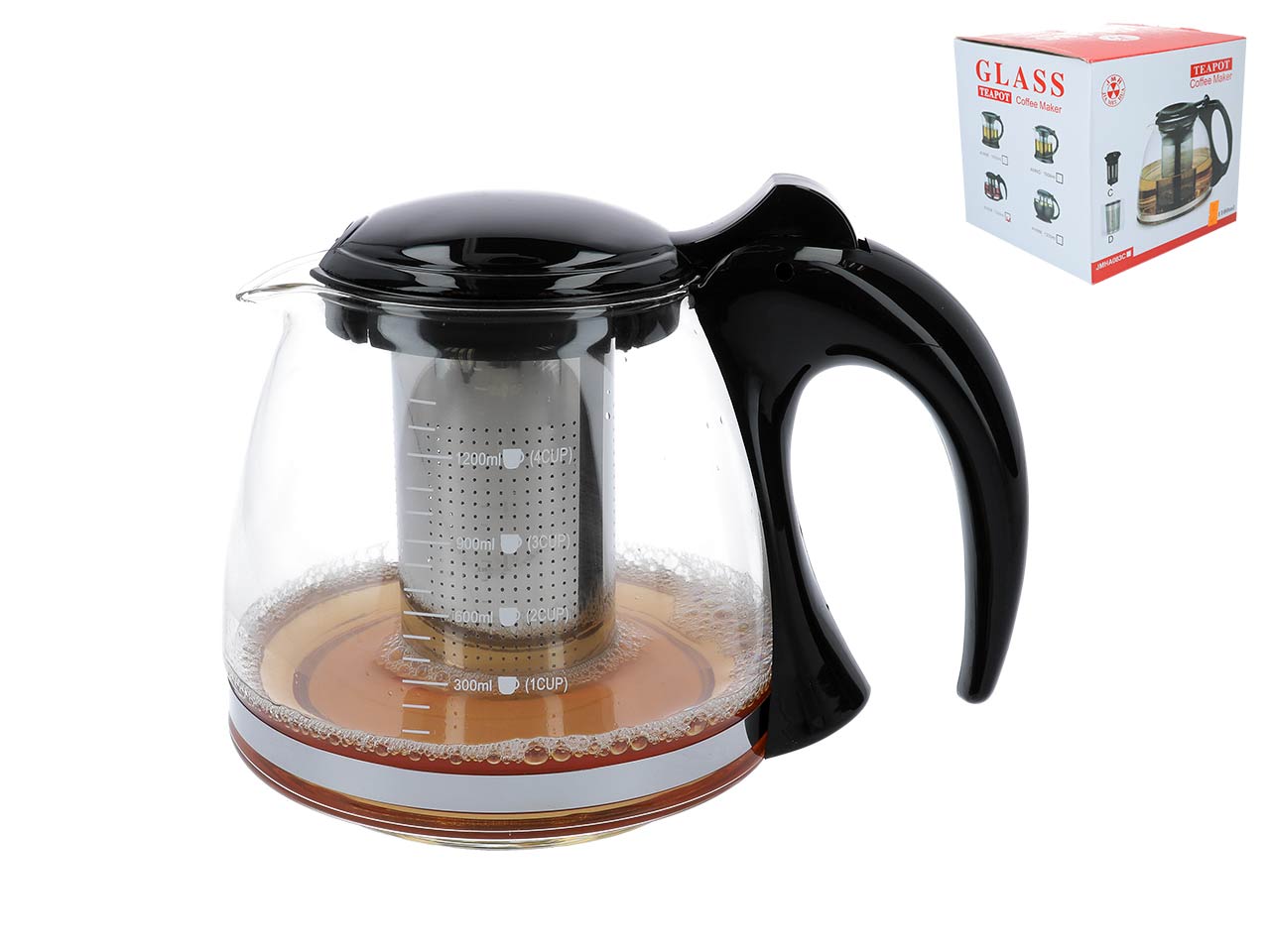 Szklany, bardzo funkcjonalny dzbanek z metalowym sitkiem. Pojemność 1200 ml.
