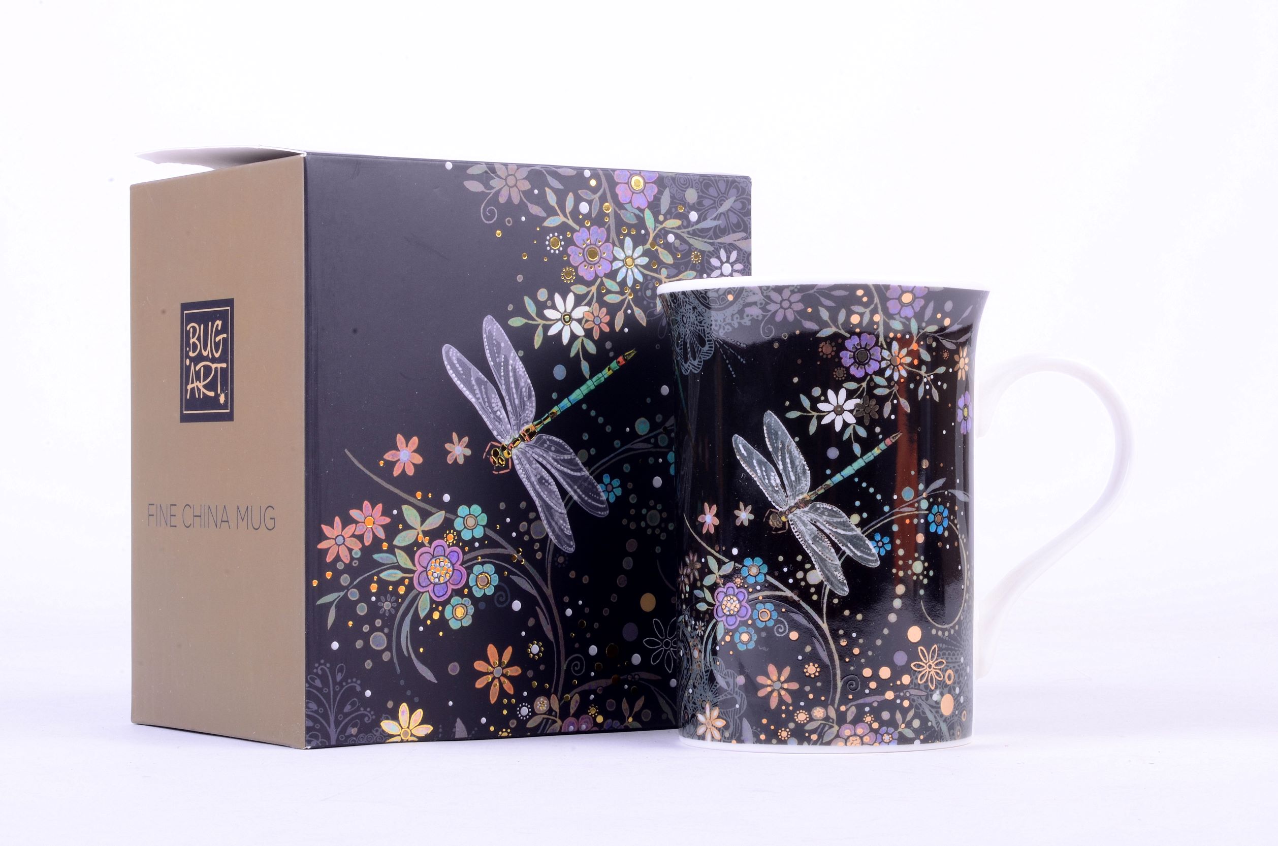 Porcelanowy kubek Bug Art Dragonfly z motywem kolorowej ważki. Zapakowany w ozdobny kartonik.