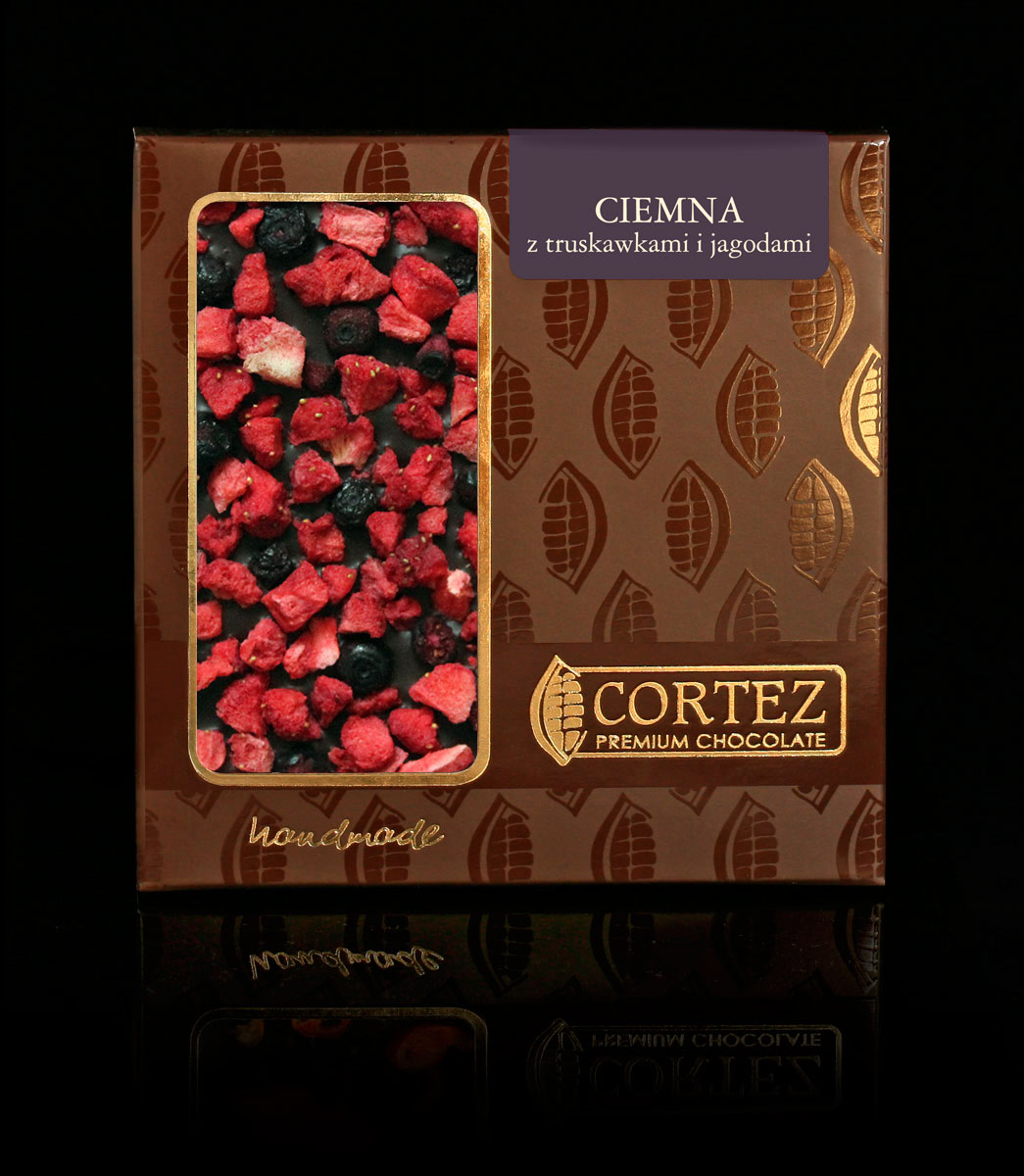 Rodzime owoce takie jak truskawki i jagody w akompaniamencie wysokiej jakości ciemnej czekolady tworzą niebywałą kompozycję smakową.