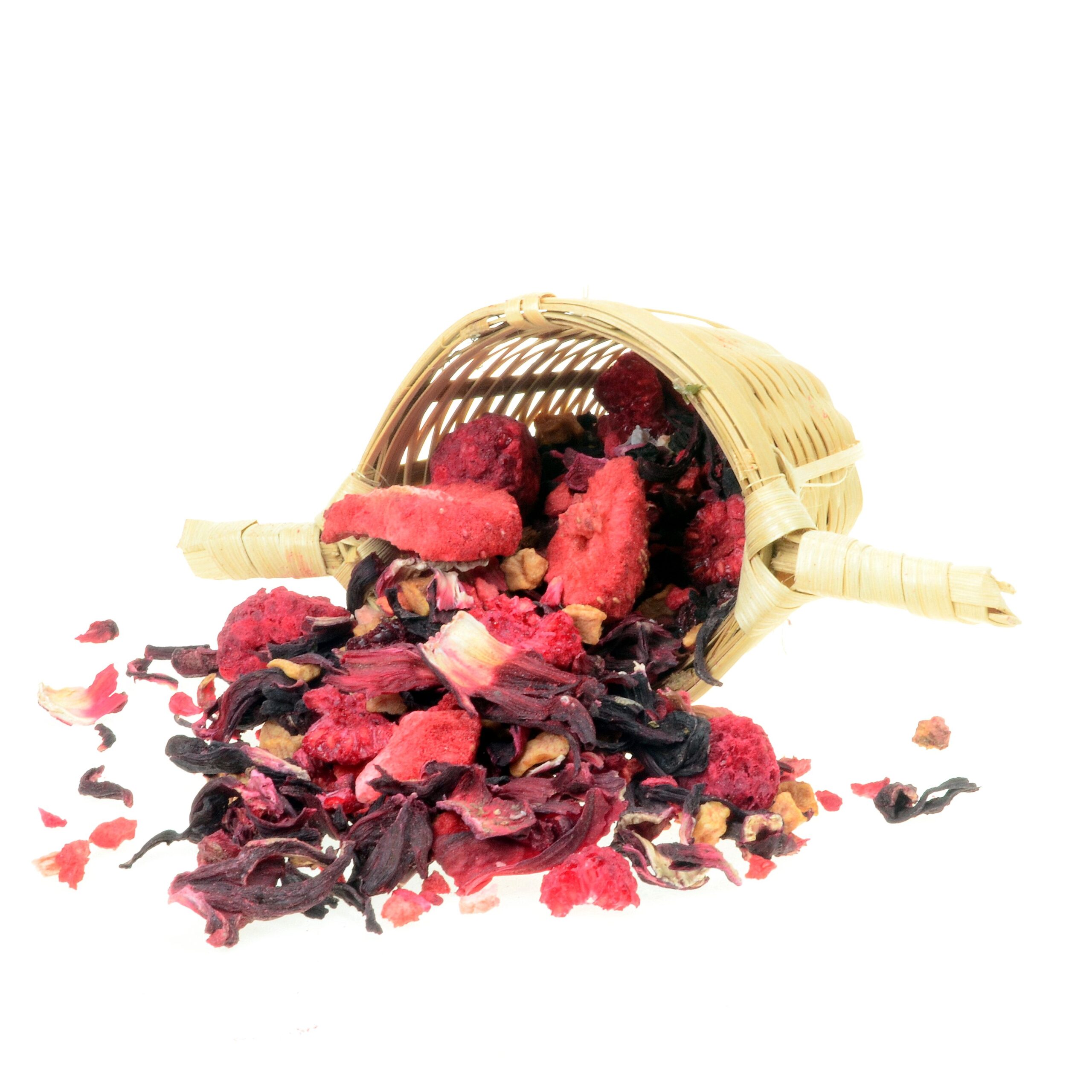 Składniki: hibiskus, liofilizowane owoce 30%: malina, jeżyna i truskawka, 5% jabłko susz.