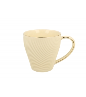 Kubek zdobiony jest unikalnymi ryflowaniami, które przywodzą na myśl delikatne kręcone włoskie lody. Wyjątkowego charakteru nadaje subtelne złote wykończenie.