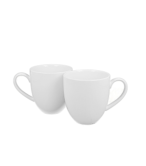 Komplet dwóch porcelanowych kubków Raphael z kolekcji Białej. Klasyczny kształt zdobiony delikatnie tłoczonymi pionowymi paseczkami.